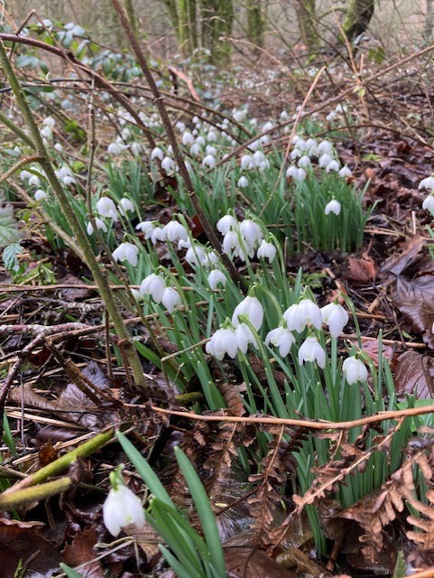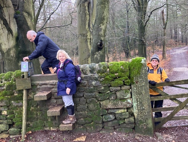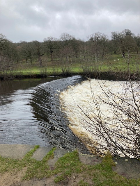 We headed out in a northerly direction to cross the haha and up the hill towards the hunting tower. We were fortunate to see a stunning herd of deer at very close range and then the snowdrops by the tower were a fantastic sight. We passed the now full Swiss Lake and continued from the large wall stile to the moor. Picking up a path leading to Beeley Lodge we began the descent, the path was very muddy and the duckboard bridges made us think that it is never a dry route. Crossing the bridge over the Derwent we turned North towards the house and followed the river back. The low lying ground by the river was waterlogged and the weirs on the river were gushing - a wonderful sight and sound. 5.6 miles covered with good company and conversation.