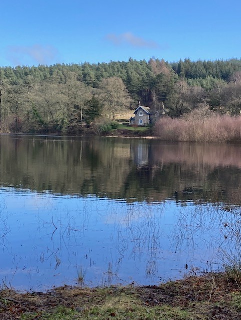 Jet and a small group of 3 walkers met at Carlton Lees car park, on the edge of the Chatsworth estate. We started by heading off along the river Derwent towards Beeley village. Passing through the village we ascended through woodland - although much of the wood has been felled and it was quite mudded and rutted - until we reached Beeley Moor. Turning left, we followed the path along the ridge passing Swiss Lake, which has received much work recently and is once again full of water. A quick coffee break at the hunting tower, with views over the house and gardens before continuing on the path and dropping down to cross the haha.