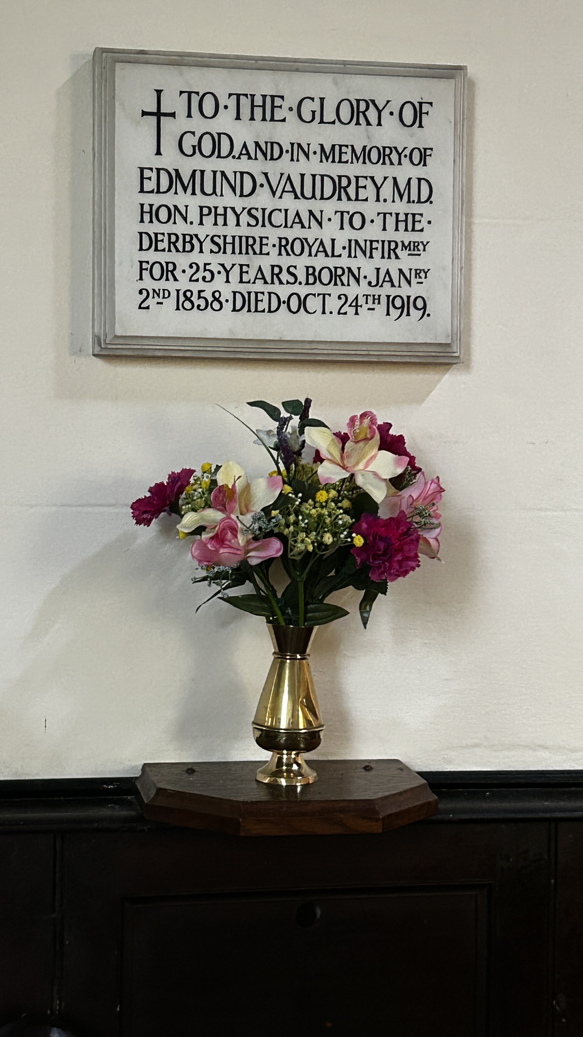 The chancel has a chair of 1666 with elaborate carving on the back, culminating in a crown with nubile lady supporters. And the wall monument to James Hawksworth, mid Victorian in date (he died in 1856 age 62) but still classical in style with draped urn, which surely would have gladdened the heart of Samuel Smiles. This is his epitaph: