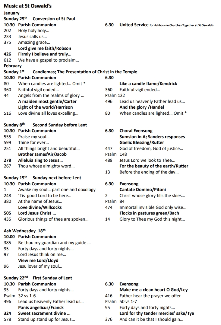 Music at St Oswald's for February
