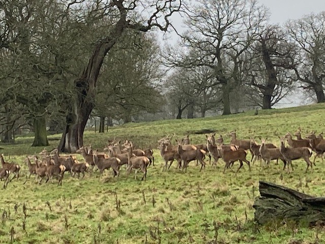 We headed out in a northerly direction to cross the haha and up the hill towards the hunting tower. We were fortunate to see a stunning herd of deer at very close range and then the snowdrops by the tower were a fantastic sight. We passed the now full Swiss Lake and continued from the large wall stile to the moor. Picking up a path leading to Beeley Lodge we began the descent, the path was very muddy and the duckboard bridges made us think that it is never a dry route. Crossing the bridge over the Derwent we turned North towards the house and followed the river back. The low lying ground by the river was waterlogged and the weirs on the river were gushing - a wonderful sight and sound. 5.6 miles covered with good company and conversation.