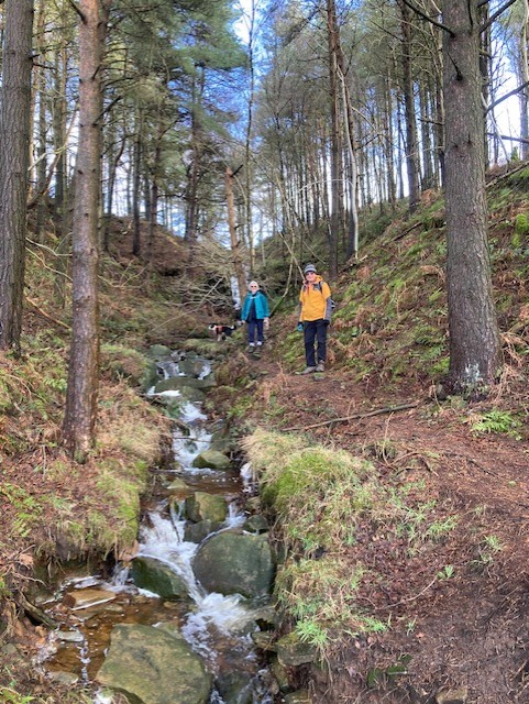 Jet and a small group of 3 walkers met at Carlton Lees car park, on the edge of the Chatsworth estate. We started by heading off along the river Derwent towards Beeley village. Passing through the village we ascended through woodland - although much of the wood has been felled and it was quite mudded and rutted - until we reached Beeley Moor. Turning left, we followed the path along the ridge passing Swiss Lake, which has received much work recently and is once again full of water. A quick coffee break at the hunting tower, with views over the house and gardens before continuing on the path and dropping down to cross the haha.